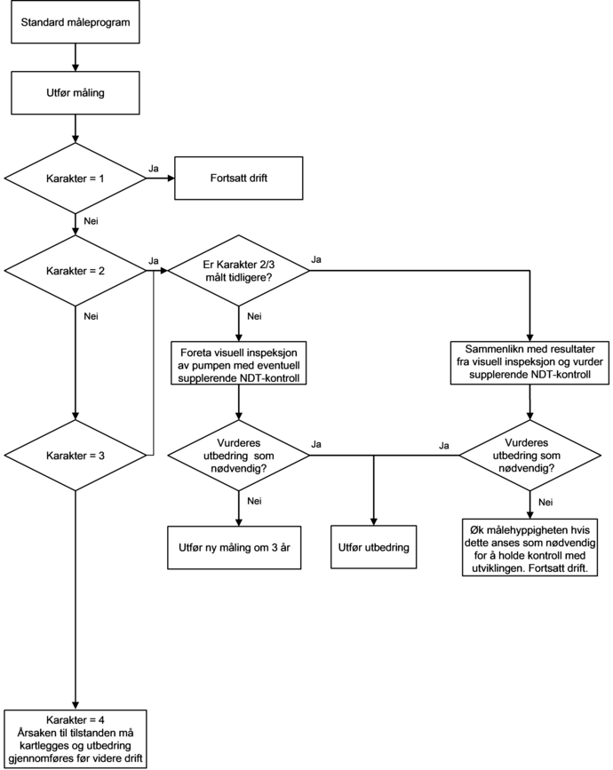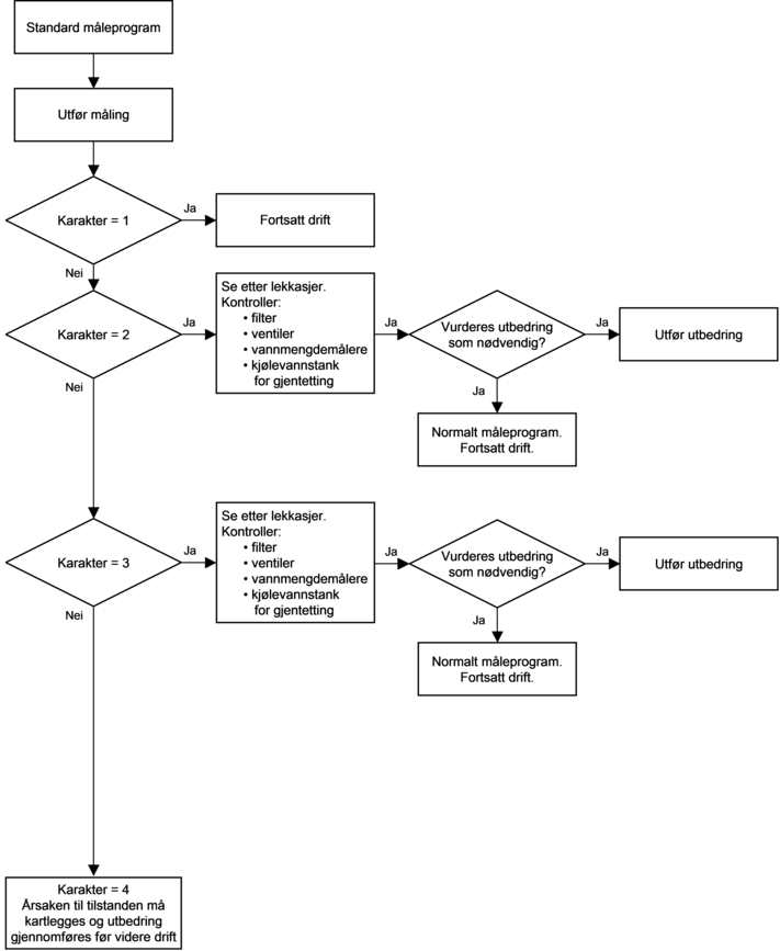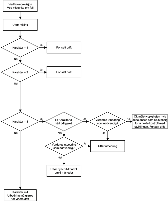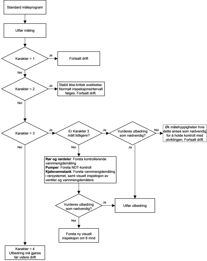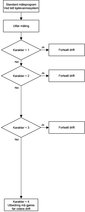 Kapittel 13.1 inneholder flytdiagrammer som skal være en hjelp til å stille diagnose for tilstanden til den aktuelle komponenten ved at et sett med regler (tolkningskriterier) anvendes på måleresultatene. Diagnosen leder fram til de tiltak som bør iverksettes ved avvikende verdier.